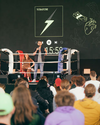 Après avoir retourné le Lab Postal, fait vibrer les vitres du Grand Palais, et rempli le Bataclan sous les accords dansants de Tryo, Tchatche© débarque au Bois de Vincennes pour faire danser les idées, secouer les cerveaux, et électriser le festival. Le spectacle de joute oratoire le plus déjanté s’invite au cœur du green !
